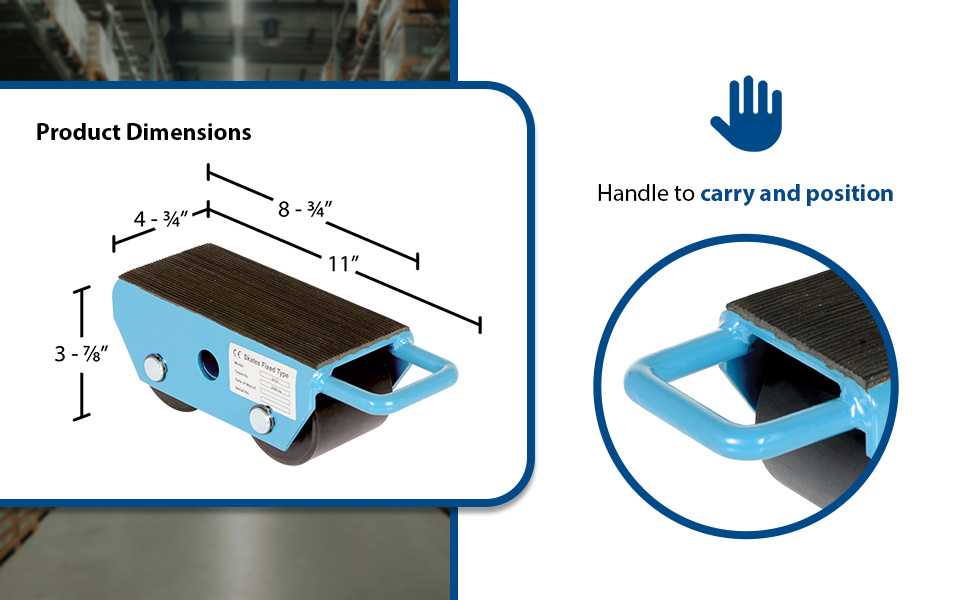 FMS-3 FMS-3Steel Fixed Machinery Skates 15-3/4 In. x 8 In. x 3-3/4 In. 6,000 Lb. Capacity BlueUniform Capacity (tons): 3