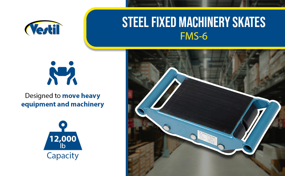 FMS-6 FMS-6Steel Fixed Machinery Skates 16-1/4 In. x 8-1/2 In. x 4 In. 12,000 Lb. Capacity BlueUniform Capacity (tons): 6