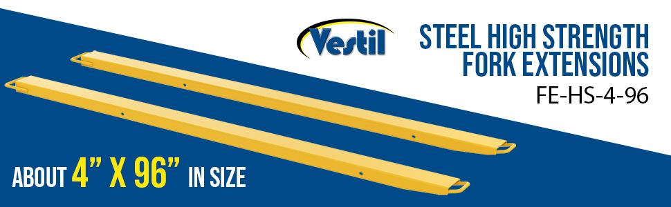 FE-HS-4-96 FE-HS-4-96Steel High Strength Fork Extensions 4 In. x 96 In. 4,000 Lb. Capacity YellowUniform Capacity Per Pair (lb.): 4,000