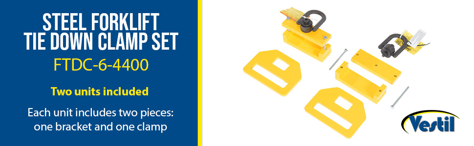 FTDC-6-4400 FTDC-6-4400Steel Forklift Tie Down Clamps 2-1/2 In. x 8-1/4 In. x 8-1/2 In. 4400 Lb. Capacity YellowUniform Capacity (lbs.): 4400 (2200 per clamp/bracket set)