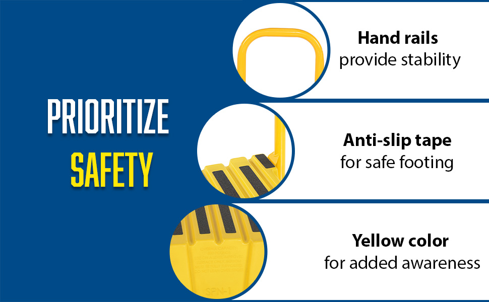 SPN-1-YL-HR SPN-1-YL-HRPolyethylene Nestable with Handrails 1 Step 500 Lb. Capacity YellowUniform Capacity (lb.): 500