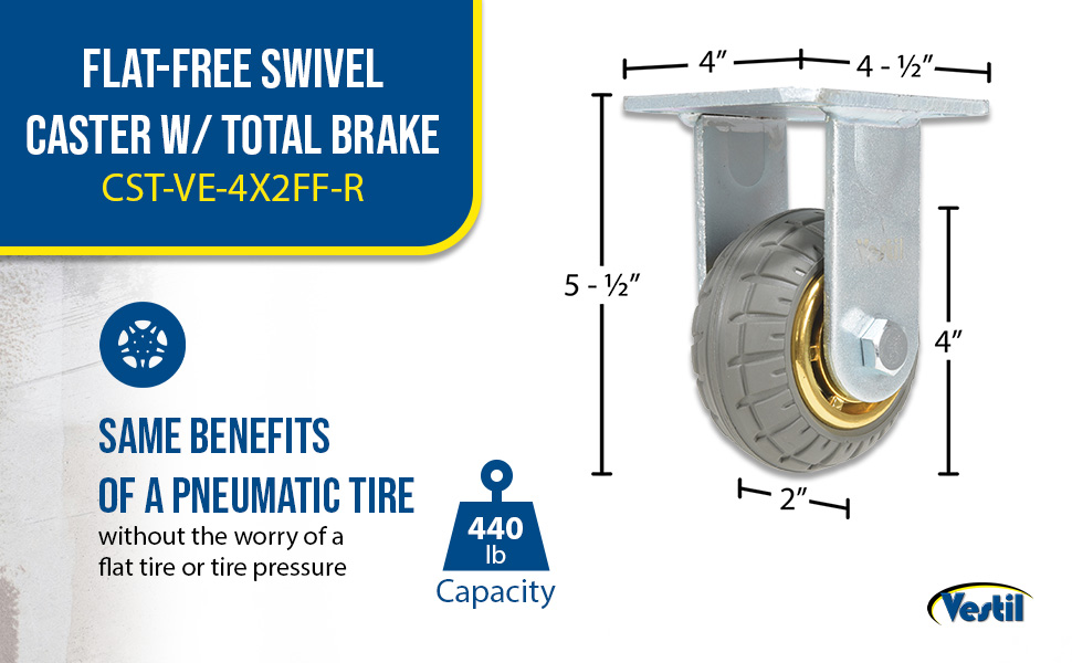 A pneumatic tire without the worry of a flat tire or hassle of refilling air. This includes a quiet, smooth, cushioned ride, that can protect fragile cargo and provide shock absorption. Additionally, it provides more options in both size and capacity compared to other flat-free designs.