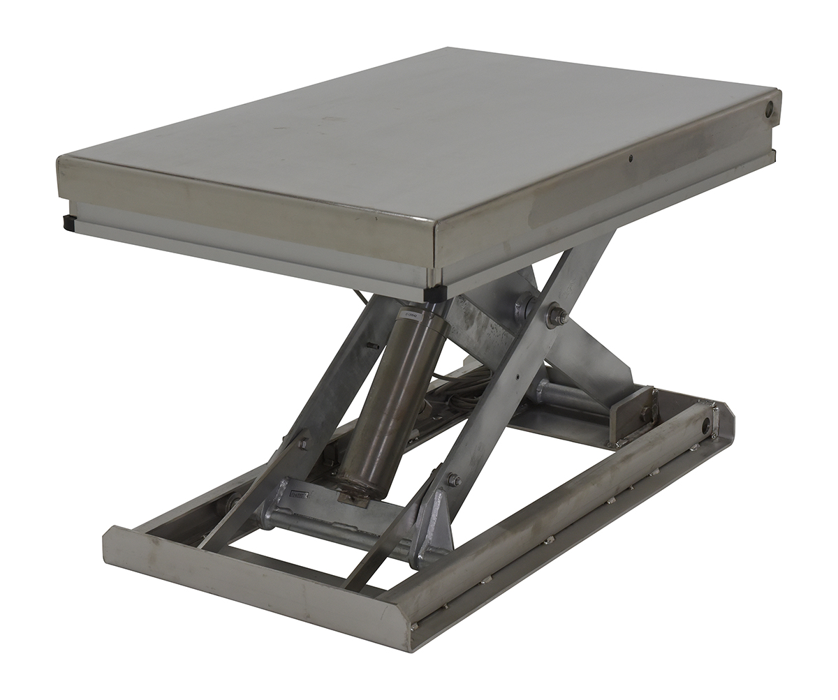 Work station electric hydraulic scissor tables are designed to raise products up to an ergonomic working height. They maximizes safety with minimum space requirements and are ideal for all types of manufacturing and warehouse facilities. An electric toe guard also comes standard with the unit. External power unit models and internal power unit models both have a 13 Second travel time (based on 3 phase motor)