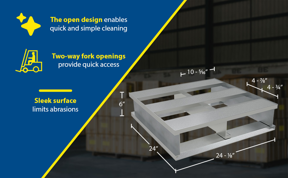 AP-2424 AP-2424Aluminum Heavy Duty Half Pallet 24-1/8 In. x 24 In. x 6 In. 4000 Lb. Capacity SilverUniform Capacity (lb.): 4,000