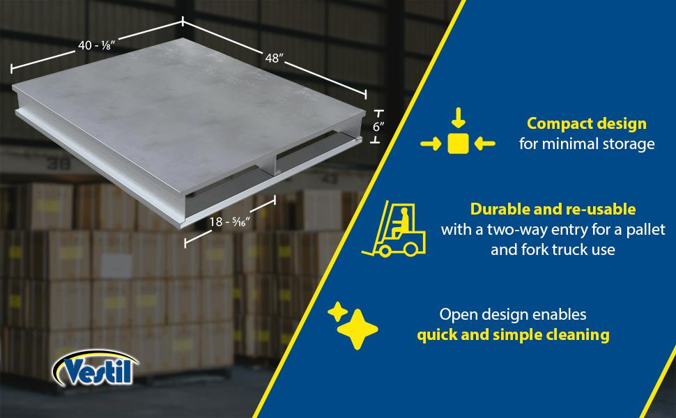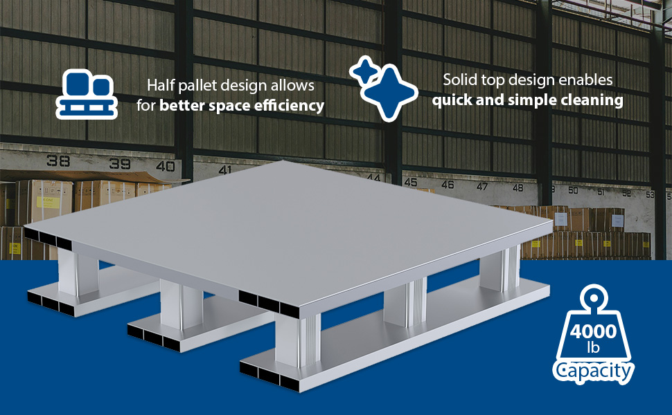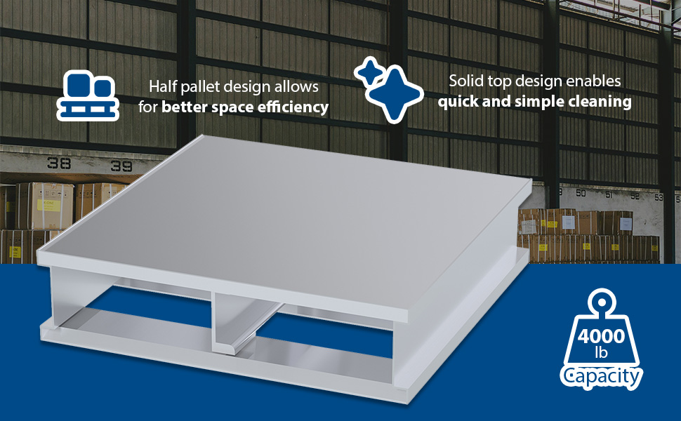 AP-ST-4824 AP-ST-4824Aluminum Heavy Duty Solid Top Half Pallet 24 In. x 48-1/8 In. x 6 In. 4000 Lb. Capacity SilverUniform Capacity (lb.): 4,000
