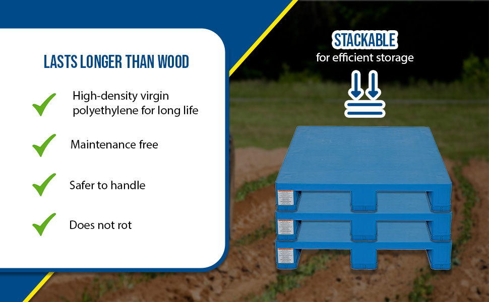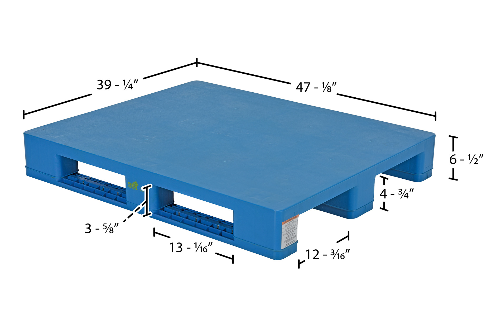 PLPS-H PLPS-HHigh Density Polyethylene Solid Top Rackable Pallet/Skid 39-1/4 In. x 47-1/8 In. x 6-1/2 In. 8,800 Lb. Floor Capacity BlueOverall Width (in.): 39-1/4
