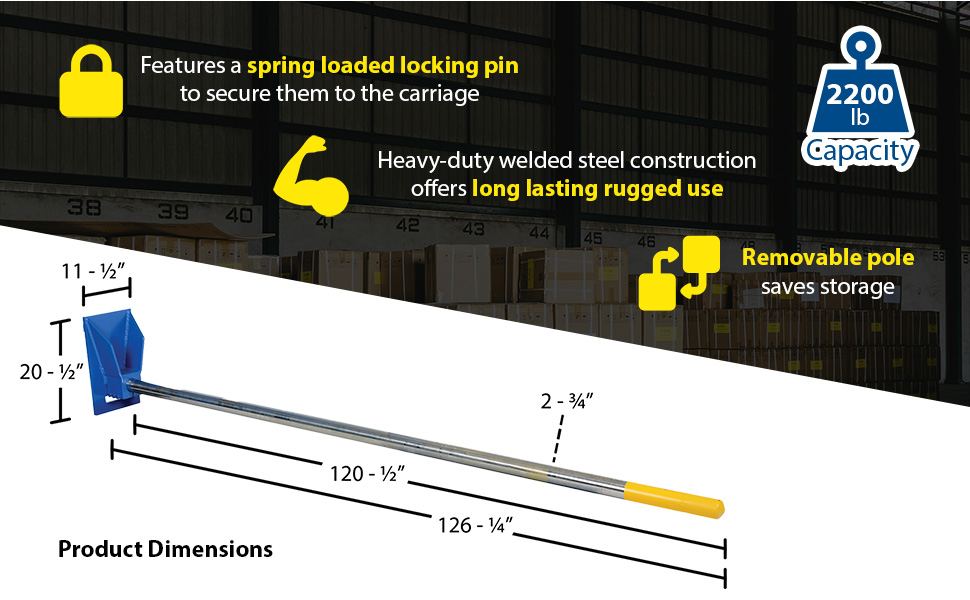 CRP-120 CRP-120Steel Fork Mounted Inverted Rug Ram Boom 120 In 2200 Lb. Capacity Blue/SilverUniform Capacity (lb.): 2,200