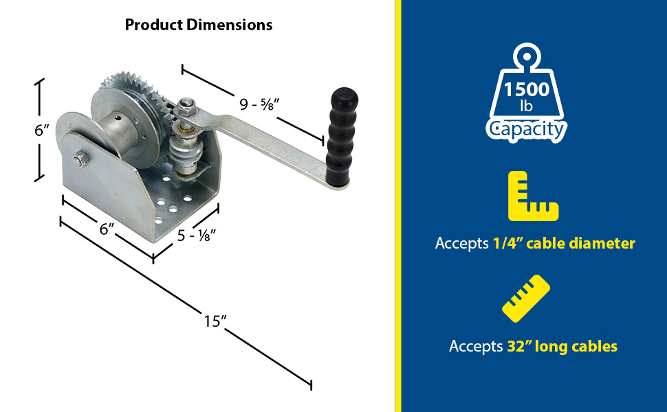 WALL-S WALL-SSteel Single Wall Mounted Hand Winch 1500 Lb. Capacity SilverUniform Capacity (lb.): 1,500