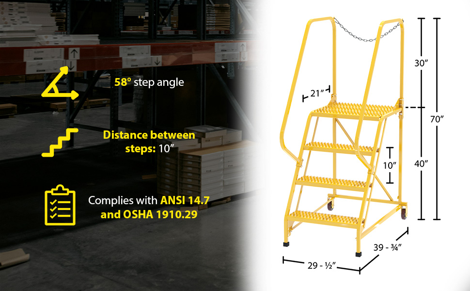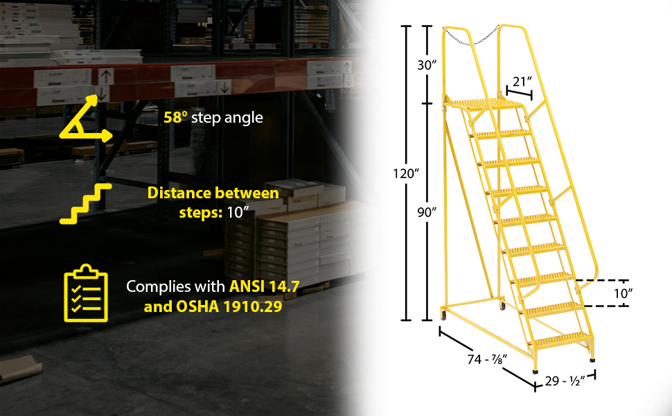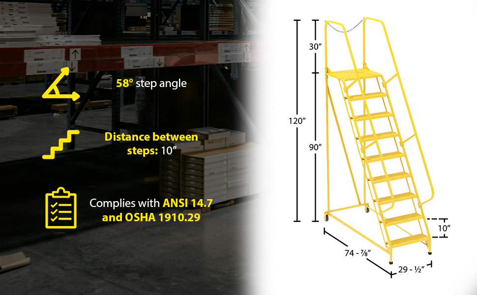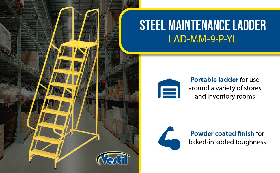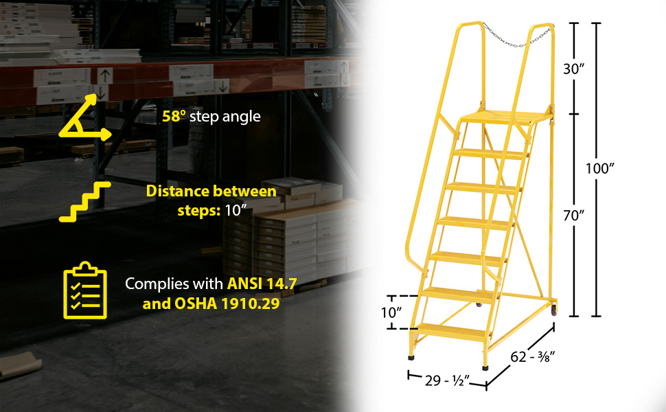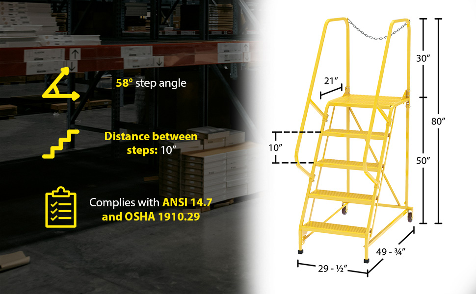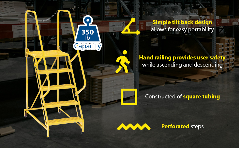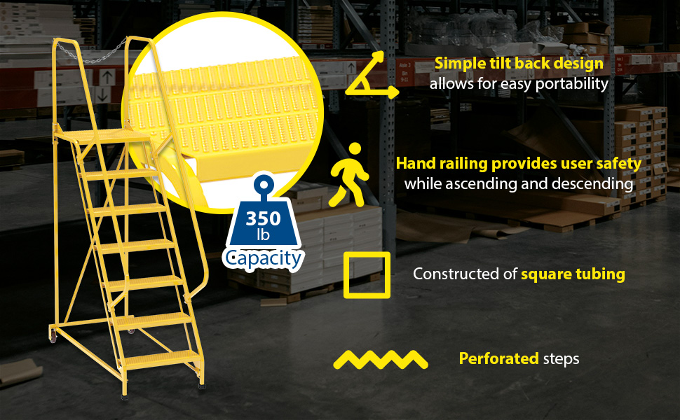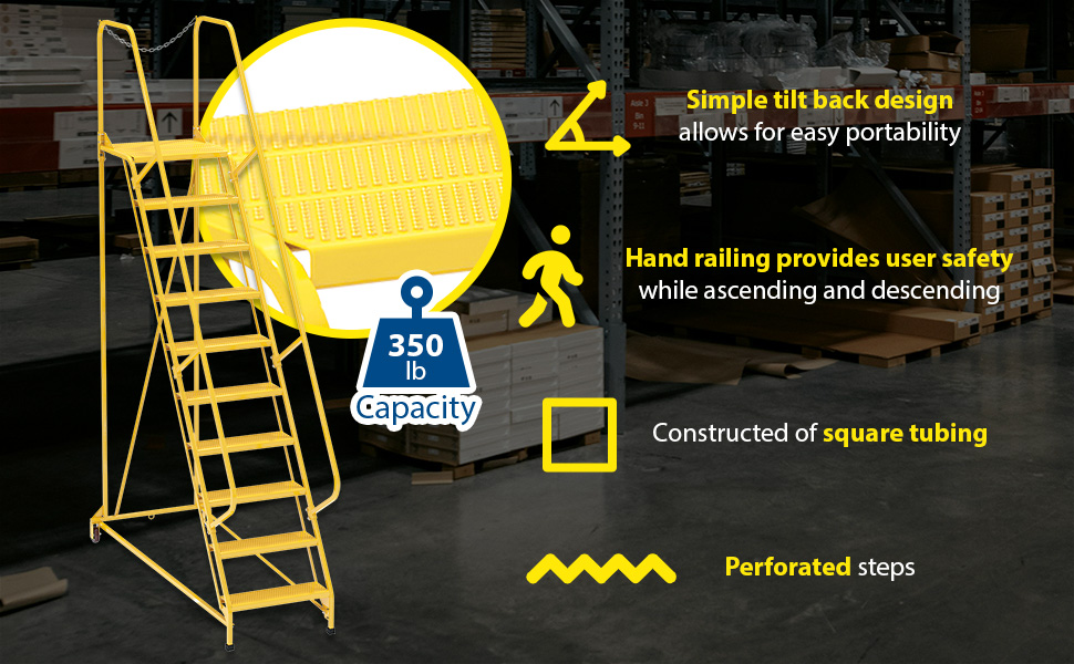 • Portable ladder allows workers to easily maneuver throughout the warehouse