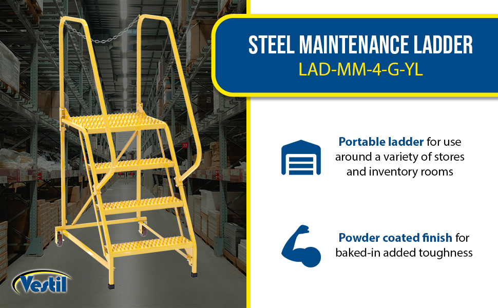 LAD-MM-4-G-YL LAD-MM-4-G-YLSteel Maintenance Ladder 58 Degree 4 Grip Strut 24 In. Step Width 350 Lb. Capacity YellowUniform Capacity (lb.): 350