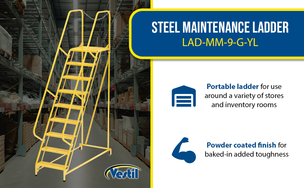 LAD-MM-9-G-YL LAD-MM-9-G-YLSteel Maintenance Ladder 58 Degree 9 Grip Strut 24 In. Step Width 350 Lb. Capacity YellowUniform Capacity (lb.): 350