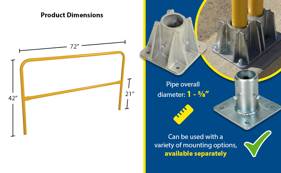 Steel Pipe Railing Barricade Base with Feet Yellow | 90 Days Limited Warranty | 6 |