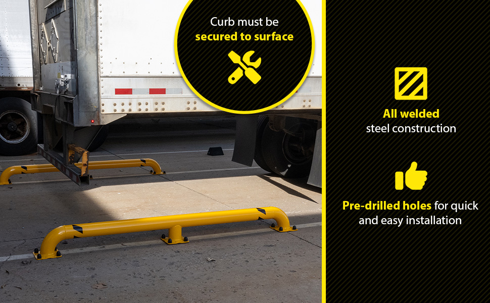 SWAC-92_D.jpgIdeal for properly aligning trailers at loading docks. All welded steel construction suitable for indoor or outdoor use. Units must be secured to surface. Heavy-duty welded-steel construction with a yellow baked in powder-coat finish for toughness. 8" x 8" base plates, each with (4) pre-drilled holes standard.