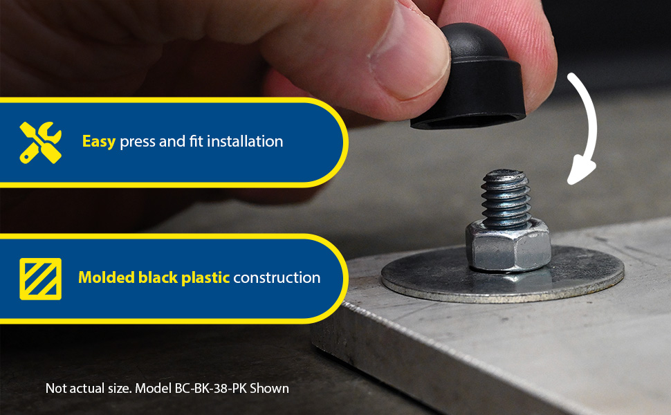 BC-BK-34-PK BC-BK-34-PKPlastic Bolt Caps 20 Pack 3/4 In. Anchor Size BlackFits Hex Bolt Size (in.): 1-1/8