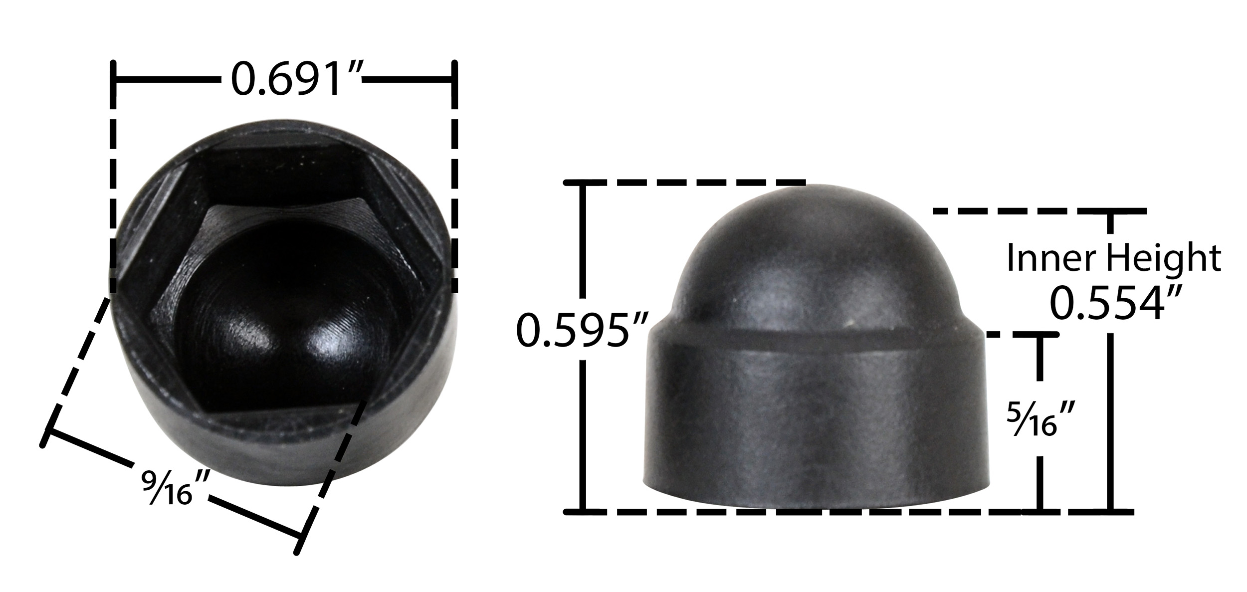 Bolt Covers are designed to finish and protect bolt heads. They have an easy press fit installation over the existing nut. Molded black plastic construction. Plastic Hardware Caps snap over the top of anchor bolts and washers to protect from weathering.