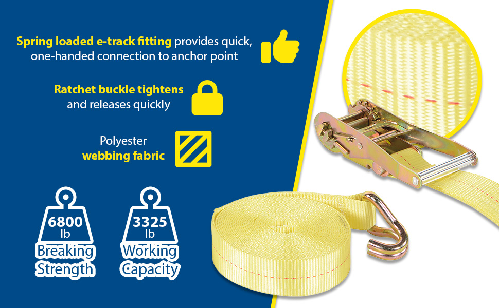 STRAP-12-RE_L.jpgGuard against damages from slipping and shifting loads while transporting products. Spring loaded e-track fittings provide quick one-handed connection to anchor point. Both ratchet and cam buckle models tighten and release quickly. Tough strapping fabric is made of a polyester webbing.
