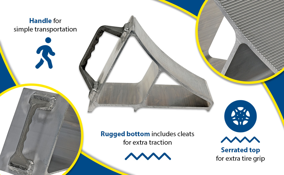 EALUM - The Aluminum Wheel Chock is ideal for the maintenance and industrial facilities. The functional design allows the user to brace the wheels, preventing the unit from moving and jostling. The open construction provides an efficient way of transporting.