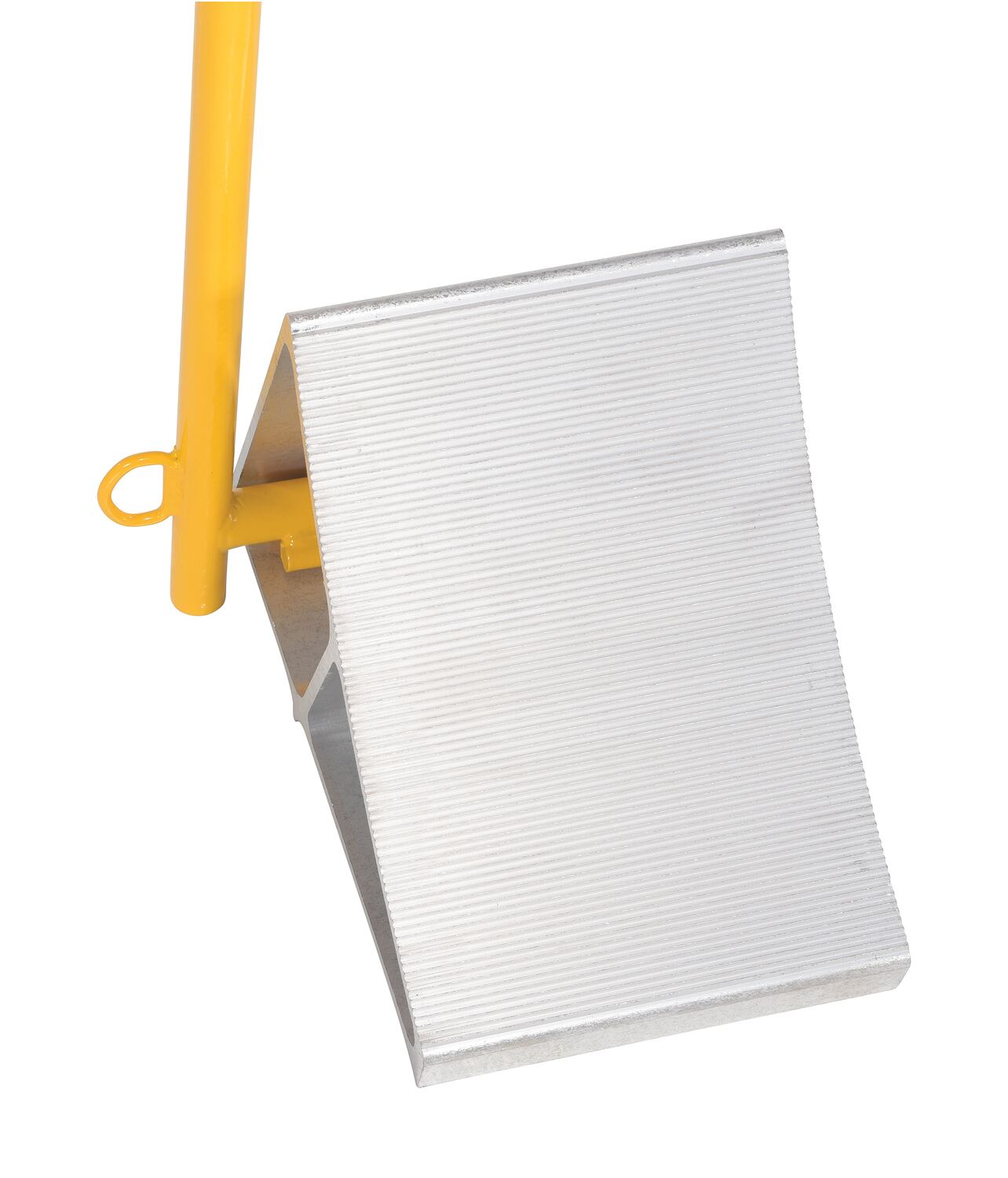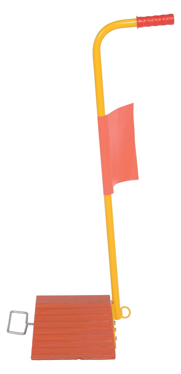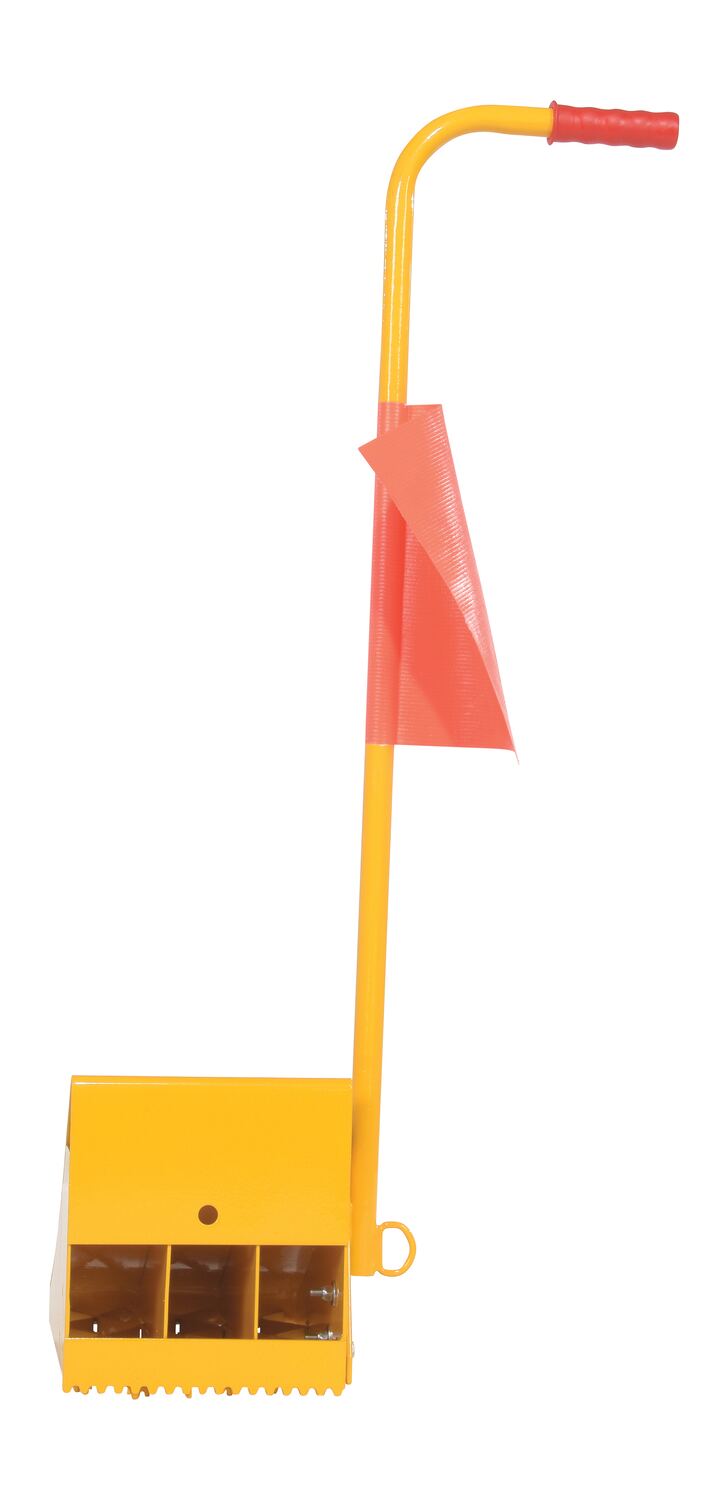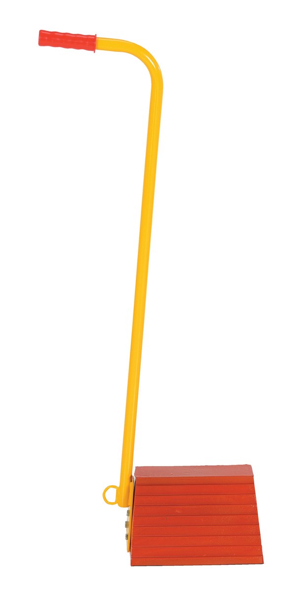 Ergonomically designed to make it easy to move wheel chocks in and out of position under trailer wheels. Reduce the risk of back, knee, and foot injuries. Handle is constructed of steel and includes a yellow baked-in powder-coated toughness. D-Ring provided for attaching security chain (chain not included.) Assembly required.