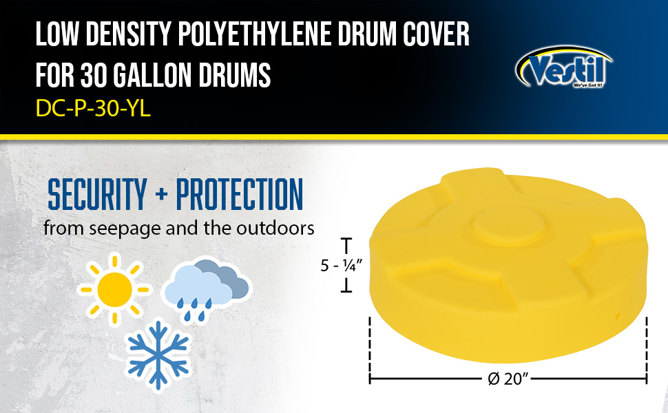 DC-P-30-YL DC-P-30-YLLow-Density Polyethylene Drum Cover 30 Gallon YellowWorks With Steel Drum (gal.): 30