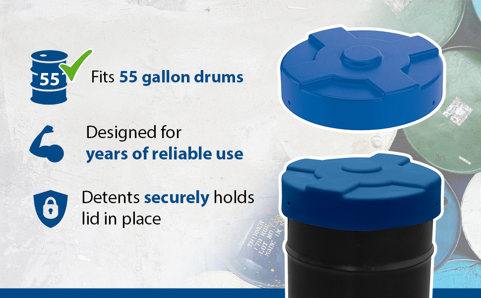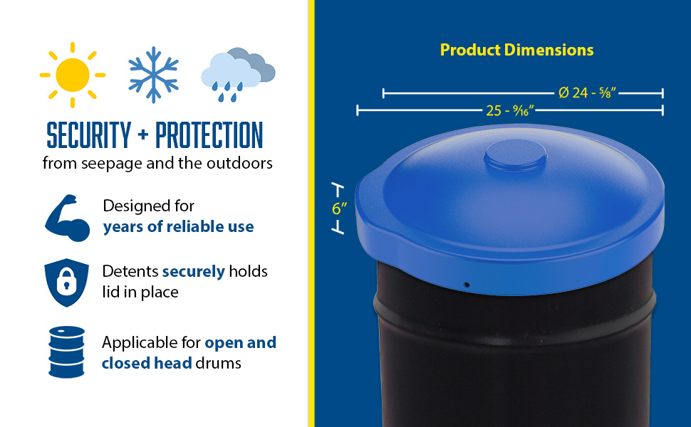 DC-P-55-UF-BU DC-P-55-UF-BULow Density Polyethylene Drum Cover 55 Gallon Universal Fit BlueOverall Diameter (in.): 24-5/8