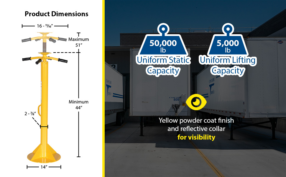 SJ-35 SJ-35Steel Economy Stabilizing Jack with Round Base 16-5/8 In. x 16-5/8 In. x 44 In. 50,000 Lb. Static Capacity YellowUniform Static Capacity (lb.): 50,000