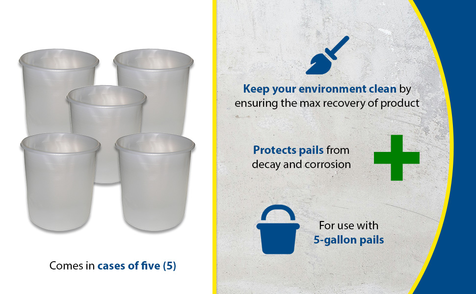 Pail Liners make disposing of materials easy, plus they help keep our environment cleaner by ensuring the maximum recovery of product. Liners also save you money by extending the lifetime of pails and reducing the cost to clean and recondition them. All rigid liners are manufactured using prime virgin FDA compliant polyethylene. Pails sold separately.
