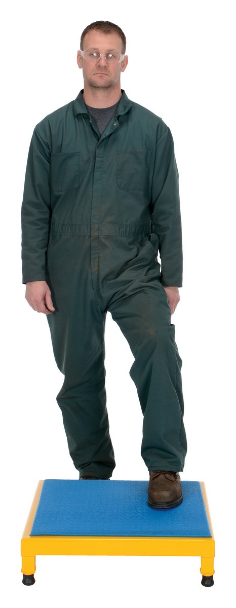 Steel Adjustable Work-Mate Stand 24 In. x 24 In. x 6-3/4 In. 500 Lb. Capacity YellowThe adjustable work-mate stand minimizes fatigue by elevating workers to heights that are comfortable and ergonomically correct. Especially useful when multiple shift employees operate the same piece of machinery. The ergonomic matting deck style provides comfort for the operator who stands all day. The height of each leg can be adjusted individually to ensure proper working height.
