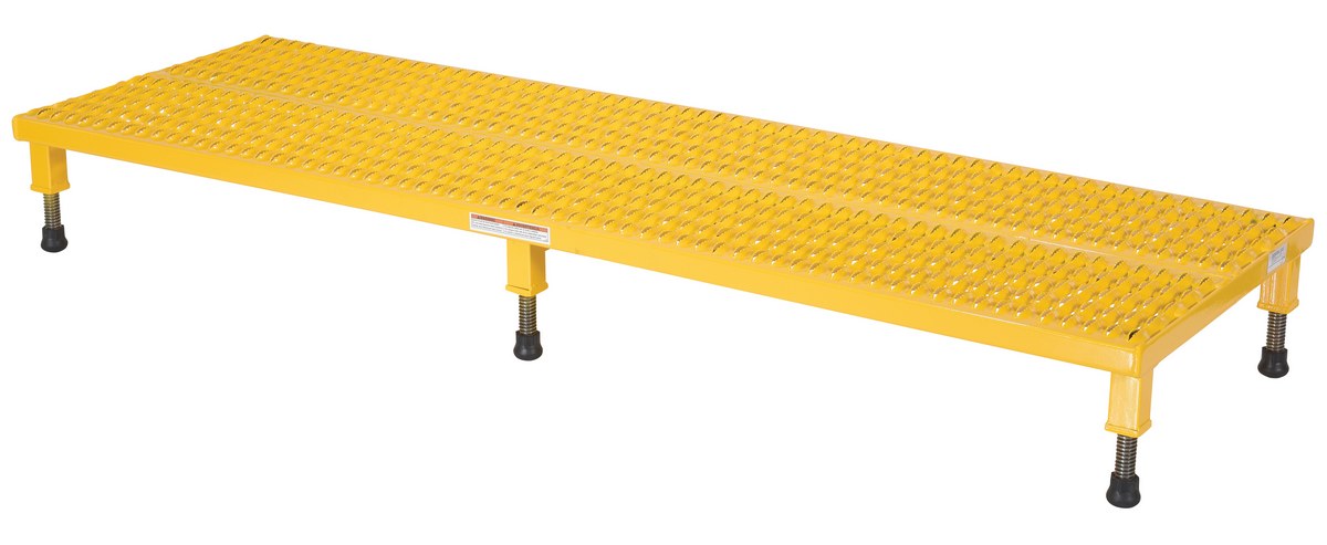 Steel Adjustable Work-Mate Stand 72-5/16 In. x 23-1/2 In. x 6-3/4 In. 500 Lb. Capacity YellowThe adjustable work-mate stand minimizes fatigue by elevating workers to heights that are comfortable and ergonomically correct. Especially useful when multiple shift employees operate the same piece of machinery. The height of each leg can be adjusted individually to ensure proper working height.