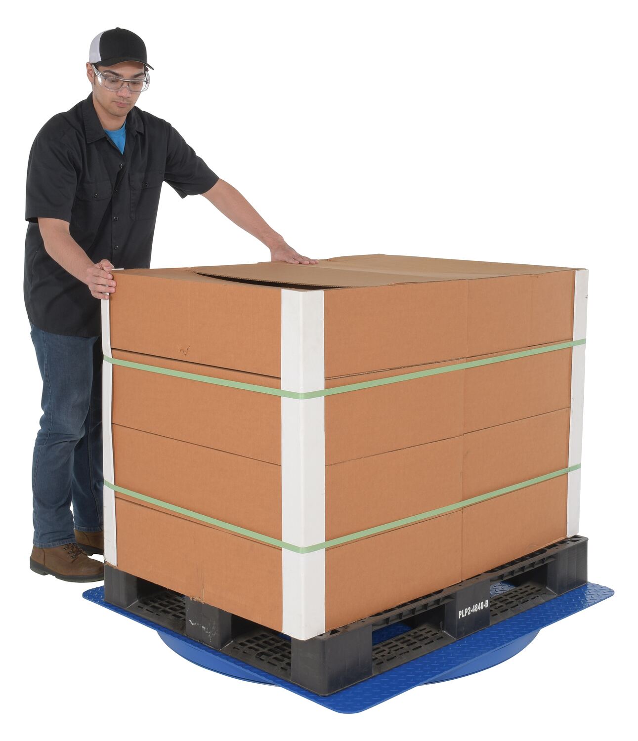 Steel 48 In. Carousel, 6K Capacity, Square Tread Top Plate BlueThis manual carousel rotates material with the assistance of an operator. Now, loading and unloading operations can be done more efficiently minimizing fatigue and risk of back injury. The carousel may be added to an existing work bench, scissor table, or simply placed on the floor. A steel constructed top plate is included with the carousel for enhanced stability during use.
