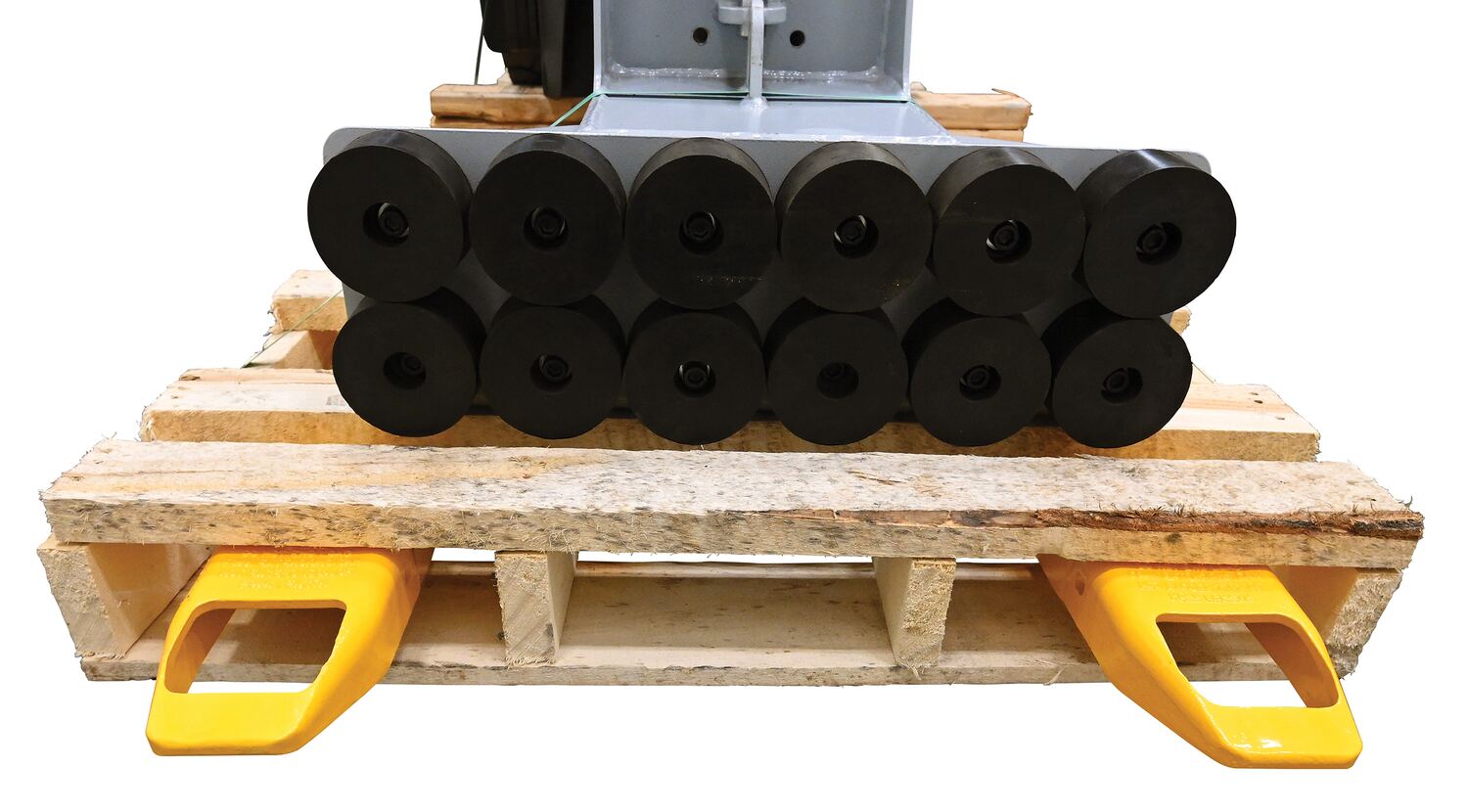 Provide the extra support needed to lift long or large objects with a fork truck using a pair of fork extensions. Welded steel construction with cast steel tips. Powder coat yellow finish. OSHA regulations require that extensions are no more than one-hundred and fifty (150) percent of the existing fork length. Insert loop at the tip of the fork and slide it up at a forty-five (45) degree angle. Then, lay it down over the existing fork. The rear spacer makes loading pallets into rear of trailer conveniently and easily. Practical for pushing pallets two or three deep into a trailer. To be used with class 2 and class 3 forks only.