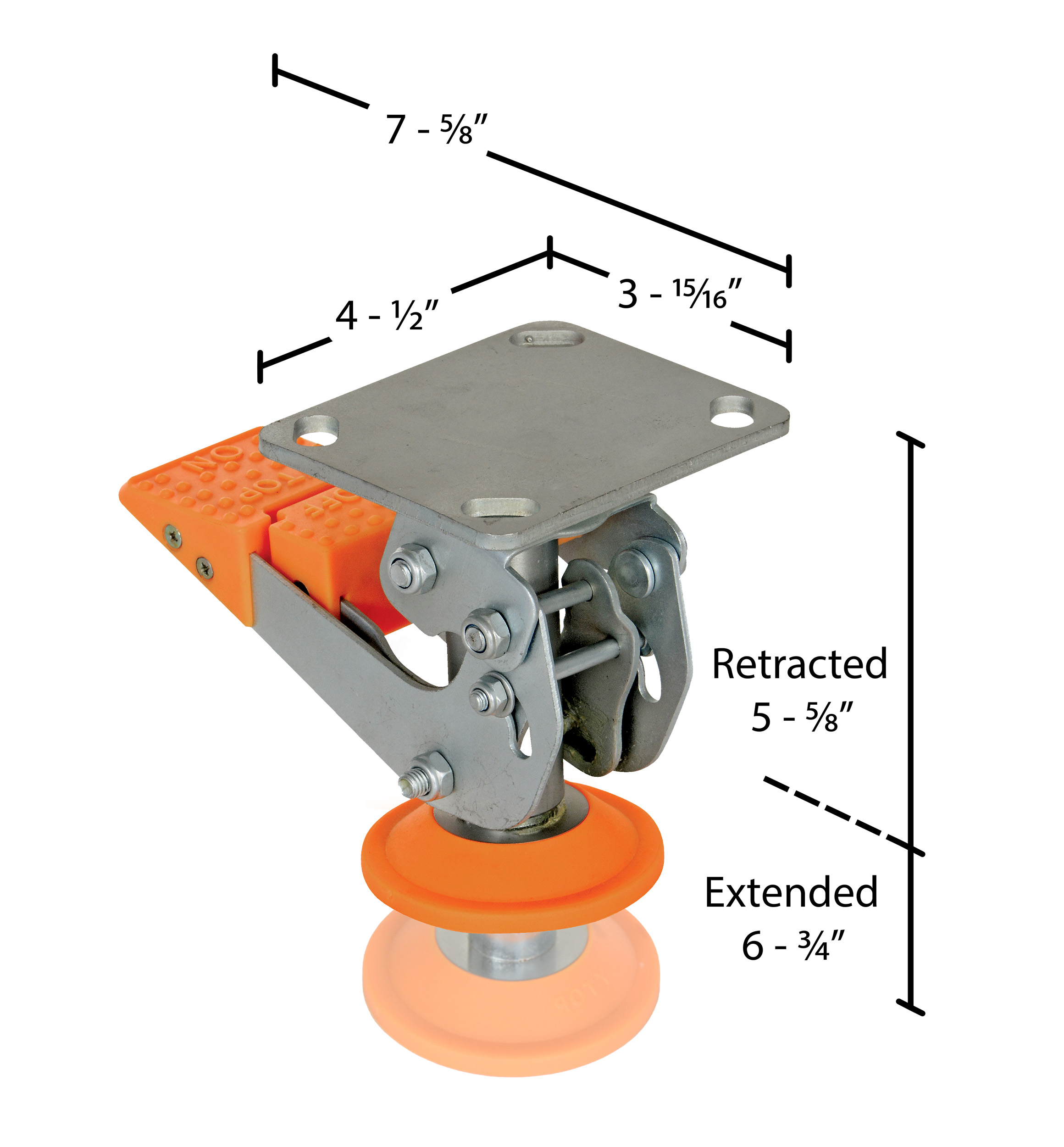 Lowered Height (in.): 5-5/8 Raised Height (in.): 6-3/4 Foot Pad Diameter (in.): 3-5/16