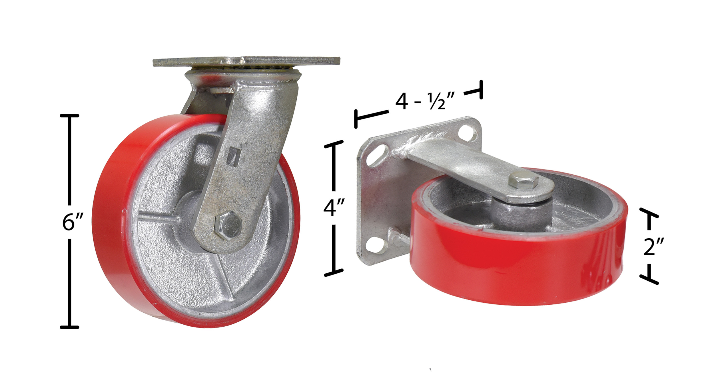 Poly On Steel Caster Kit 6 In. x 2 In. 3,600 Lb. Capacity Red