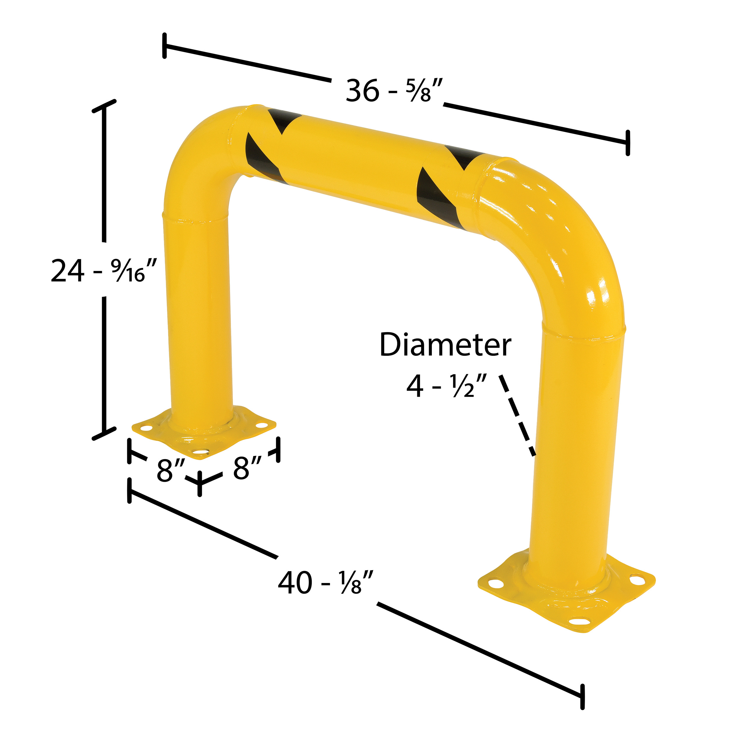 Guard Diameter (in.): 4-1/2 Guard Width (in.): 36-5/8 Base Plate Width/Length (in.): 8 x 8