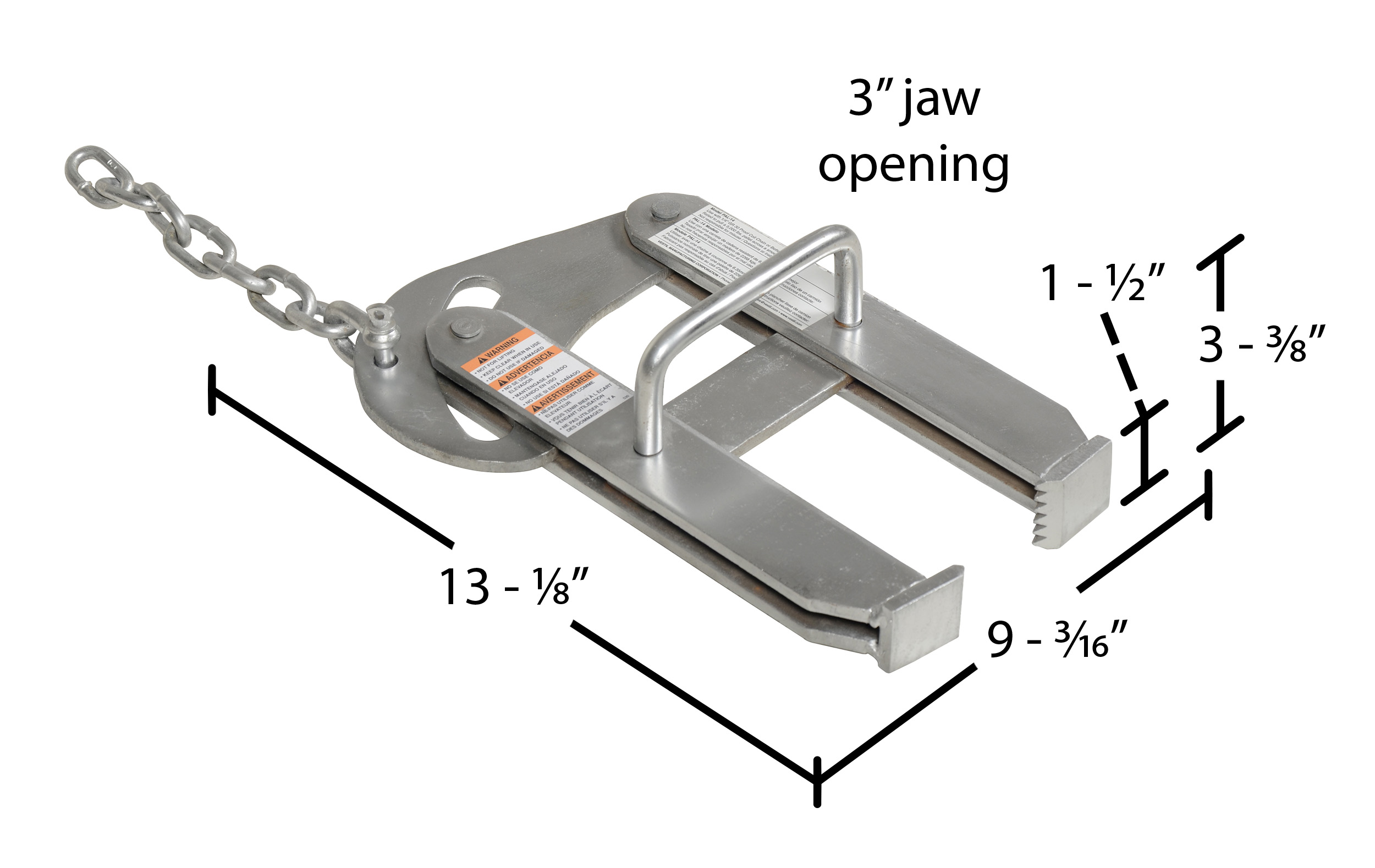 Jaw Opening (in.): 3 Closed Width (in.): 9-1/4 Closed Height (in.): 23-3/4
