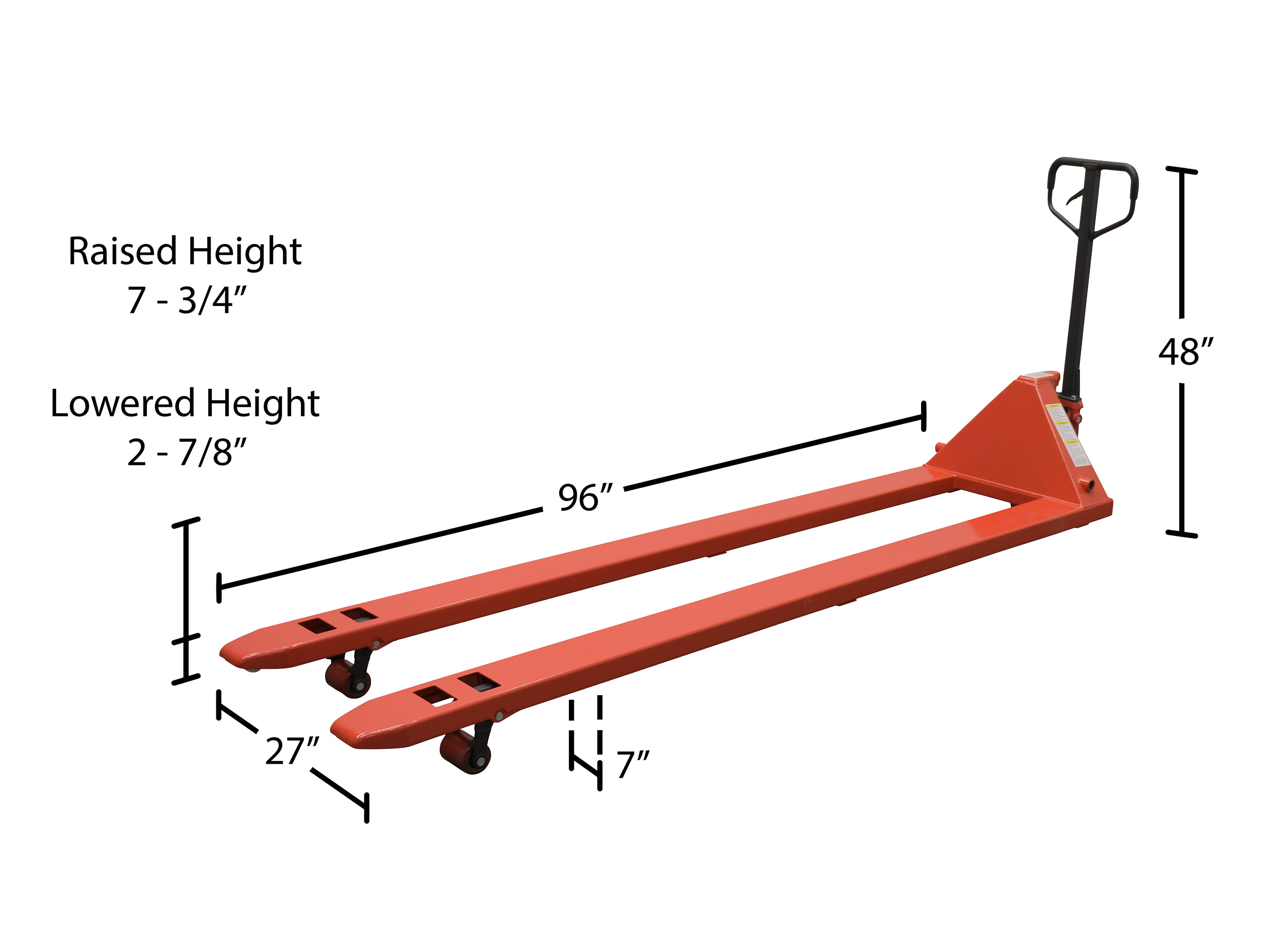 Steel Full Featured Pallet Truck 112 In. x 27 In. x 48 In. 4000 Lb. Capacity Red