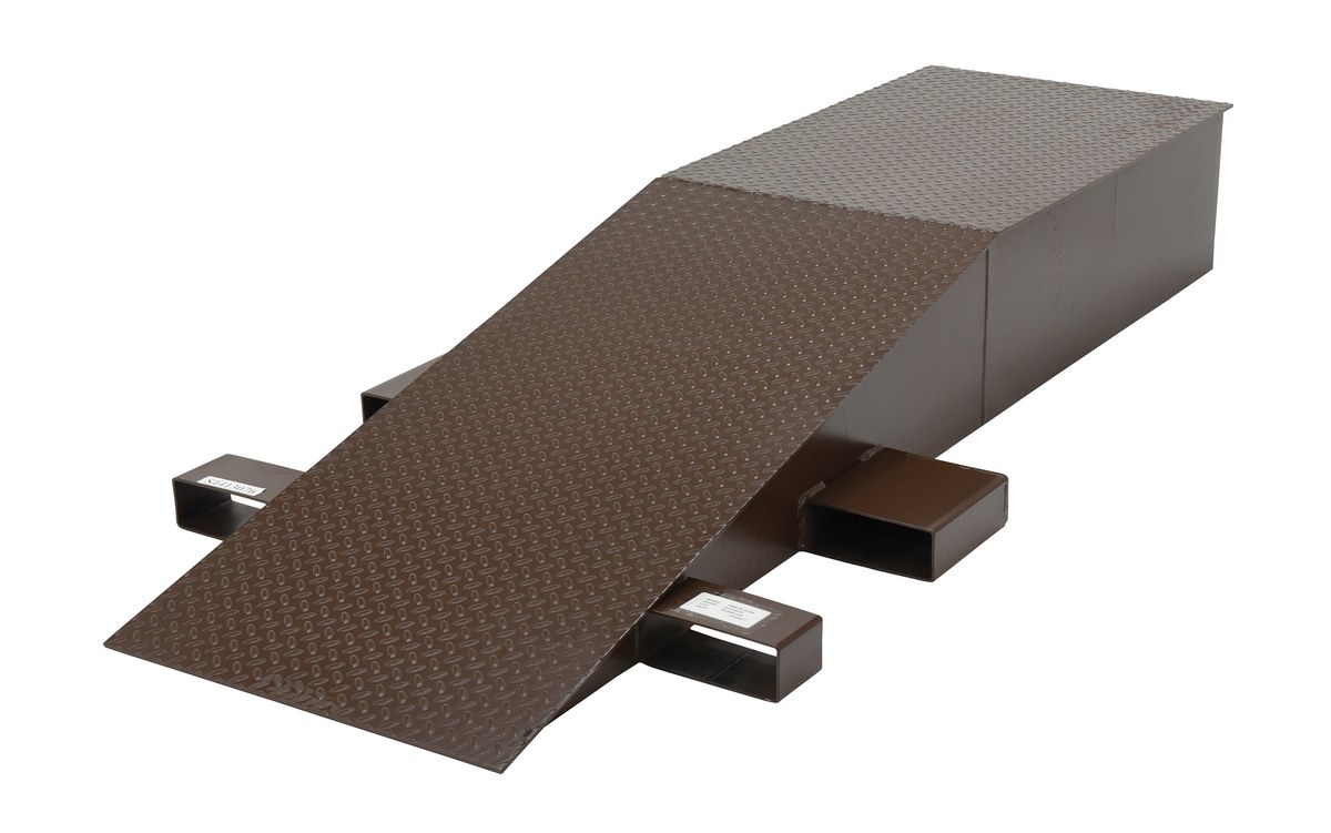 Wheel risers are designed to raise trailers to an appropriate crossover height for loaded fork trucks. Made of heavy-duty welded steel construction, these wheel risers are built to last! Each riser is equipped with fork pockets for easy transportation wherever a fork truck is available. Ramps may be stacked for convenient storage when not in use. Wheel risers are sold and priced as individual units.