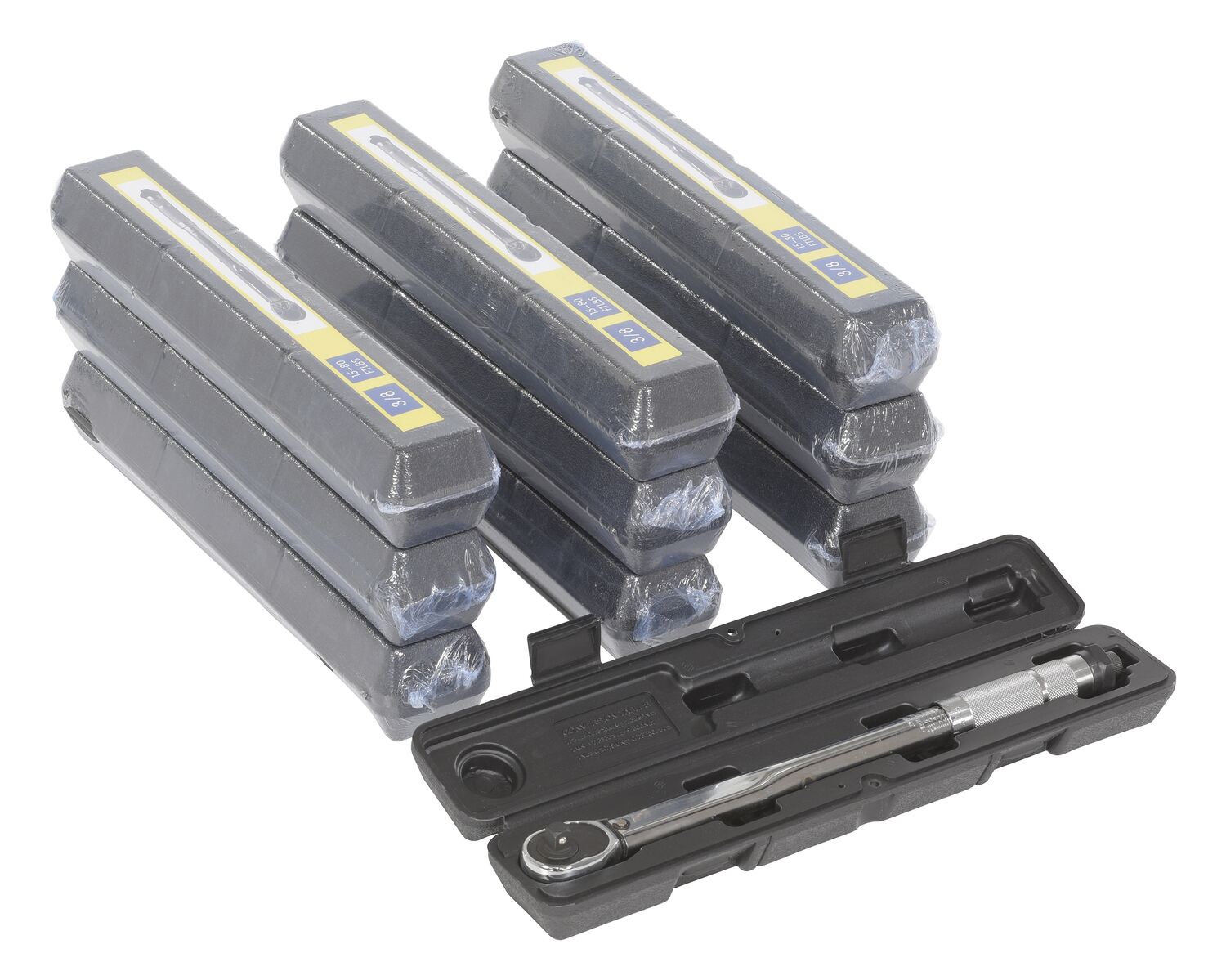 Steel Torque 3/8 In Drive Wrench with Rating 10 to 80 Ft - Lbs 10 Pack SilverReversible ratchet-head style torque wrench with easy to set torque setting - wrench "clicks" when setting is reached. Knurled handle grip surface for extra grip during use. Use with bung sockets to comply with UNC standards.