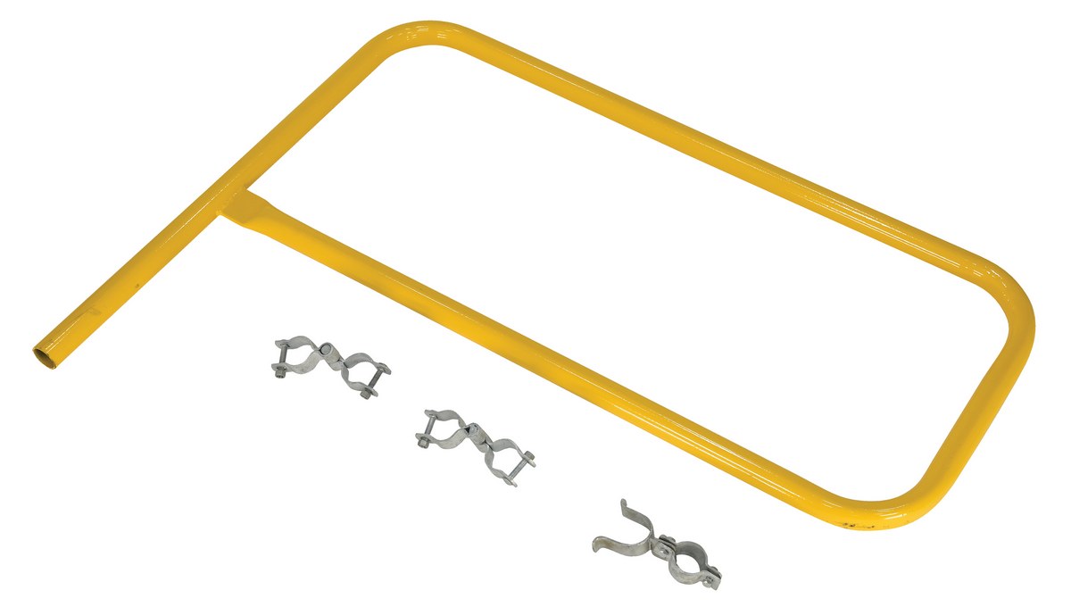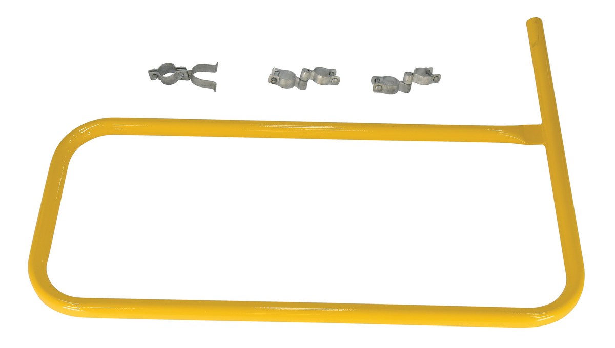 The steel gate works great as an addition to the pipe safety railing. The steel construction is durable and visible with a yellow finish. Hardware for simple installation is included.